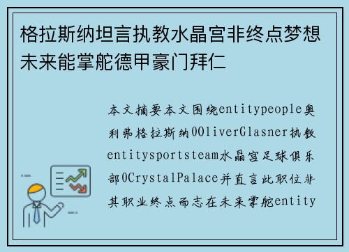 本文围绕法国前锋entity["people", "奥斯曼·登贝莱", 0]近期因腿筋不适所引发的发端担忧展开叙述。从他当前的身体状况、影响球队战术、对阵强敌entity["sports_team", "拜仁慕尼黑", 0]的意义,以及俱乐部和教练组的应对策略四个维度,深度剖析登贝莱的受...